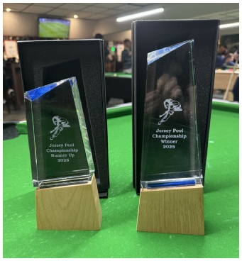 Congratulations to Jordi Etchells in becoming the Jersey Pool Champion 2025. In a record entry of 36 players Jordi beat Charlie Hassett 5-3 in a great final with both players deserving to win. Jordi beat Gregg Marshall in the semi Final and Charlie beat Matt Barker. Thank you to the tournament director Paul Bolton for hosting the event and for the trophies and for adding to the prize fund which was a record with £380 going to the winner and £190 to the RU and £95 to the SF. Also a big thank you to all the staff at Planet Pool and Snooker for all their help and making this the excellent afternoon of pool.